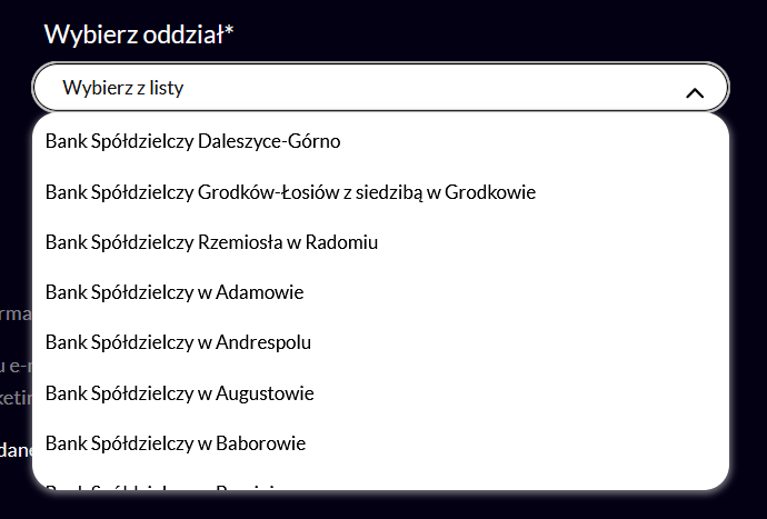c. w polu: „Wybierz Bank z którego korzystasz” wybierz: „Banki Spółdzielcze z Grupy BPS oraz Bank BPS S.A.”